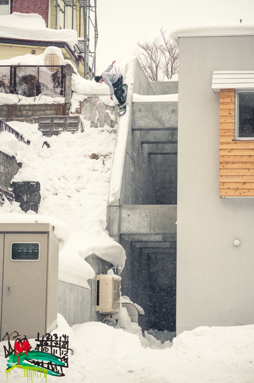 Y: Yeah, and it was so refreshing to have someone filming that had worked so much on sets and stuff but never in snowboarding, really. He was the person who would make us realize how crazy we are sometimes and would just bring us back to basic things like to go eat something, you know. Or go relax in the onsen instead of turning around for hours in a van full of riders scoping for spots and not finding any. You know how things can be tense on street trips when everyone is exhausted and with crazy work ethics where we can never stop. If we get a clip, we just want to get another one and would easily forget to enjoy here and now. So he really contributed to that, and that was pretty cool. He was fully in for it but contributed with a “take a step back and enjoy this because we’re in Japan” mentality.