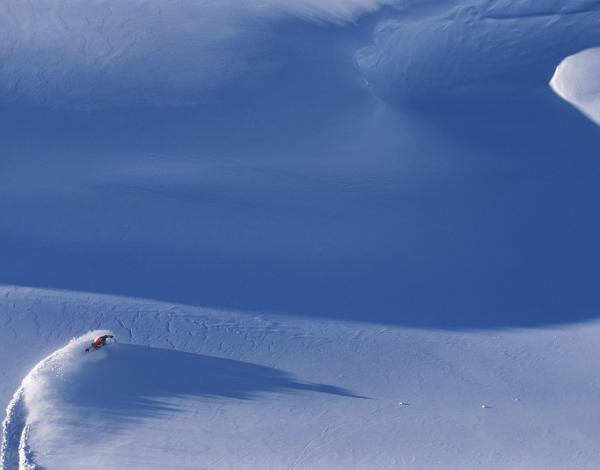 "This is a shot of my ex-girlfriend. I had been shooting all day with a few other riders in Engelberg. Sandra and I hooked up for a last run of the day.